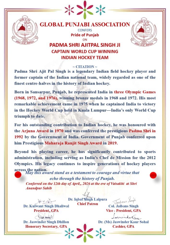 CONFERMENT ON MAHARAJA RANJIT SINGH AWARD & BOOK ‘TILAK JANJU KA RAKHA’ LAUNCH CEREMONY BY GLOBAL PUNJABI ASSOCIATION