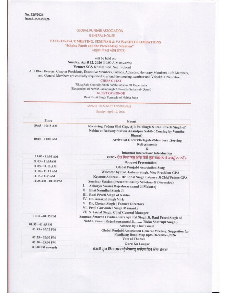 Global Punjabi Association had the honour of attending the Mahan Jagriti Jatra held at the historic Heera Mahal, Nabha, on... read more